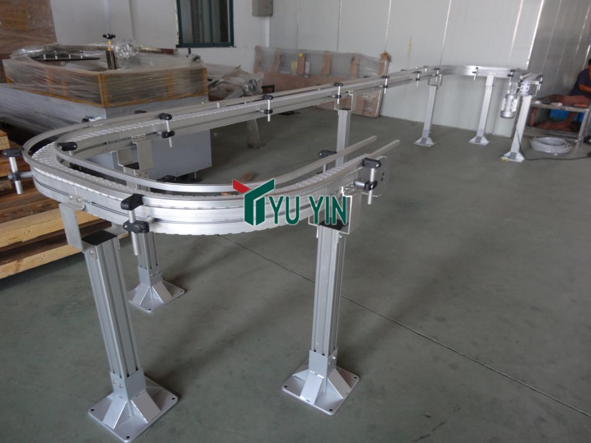 柔性鏈板輸送線是一種情形組合立體輸送系統(tǒng),采用鋁合金或不銹鋼框架,柔性齒形輸送鏈。具有靈巧、輕便、美觀,標(biāo)準(zhǔn)化的結(jié)構(gòu),模塊化設(shè)計,安裝快速,隨意、系統(tǒng)穩(wěn)定、緊湊、安靜、無污染,廣泛用于衛(wèi)生要求高,場地范圍小,潔凈,自動化程度高的生產(chǎn)線配套使用,具有轉(zhuǎn)彎半徑小,爬坡強(qiáng)等優(yōu)點(diǎn),是藥廠,化妝品廠,食品廠,軸承廠等行業(yè)自動化連線理想的便捷產(chǎn)品。