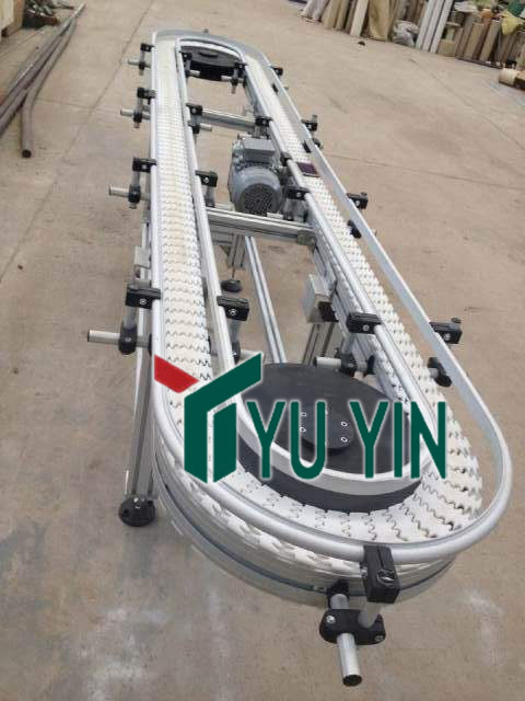 5、柔性鏈輸送機(jī)轉(zhuǎn)彎裝置:鏈板轉(zhuǎn)彎時的內(nèi)支撐裝置。分為水平彎頭、垂直彎頭、水平輪彎頭及水平輪等。