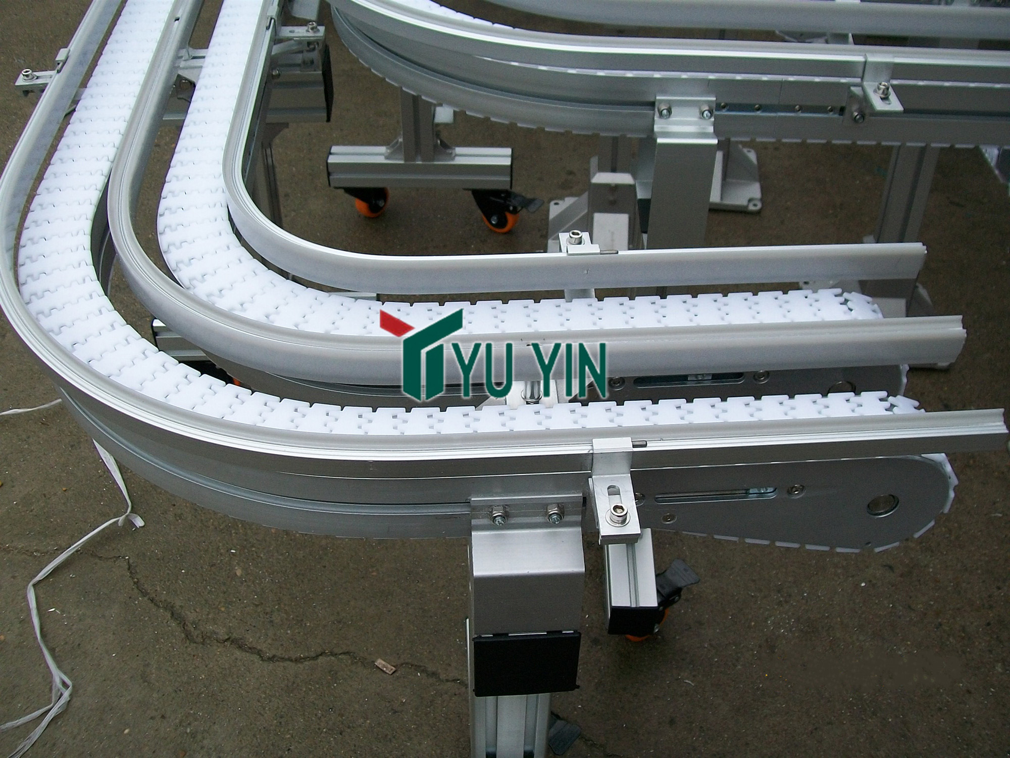 柔性鏈輸送機整條輸送線由高強度工程塑料鏈板與表面經(jīng)陽極氧化的鋁合金異型材組裝而成。柔性鏈輸送機鏈板一般為純白色,設備運行無需潤滑,沒有污染,不會被腐蝕,符合GMP規(guī)范。