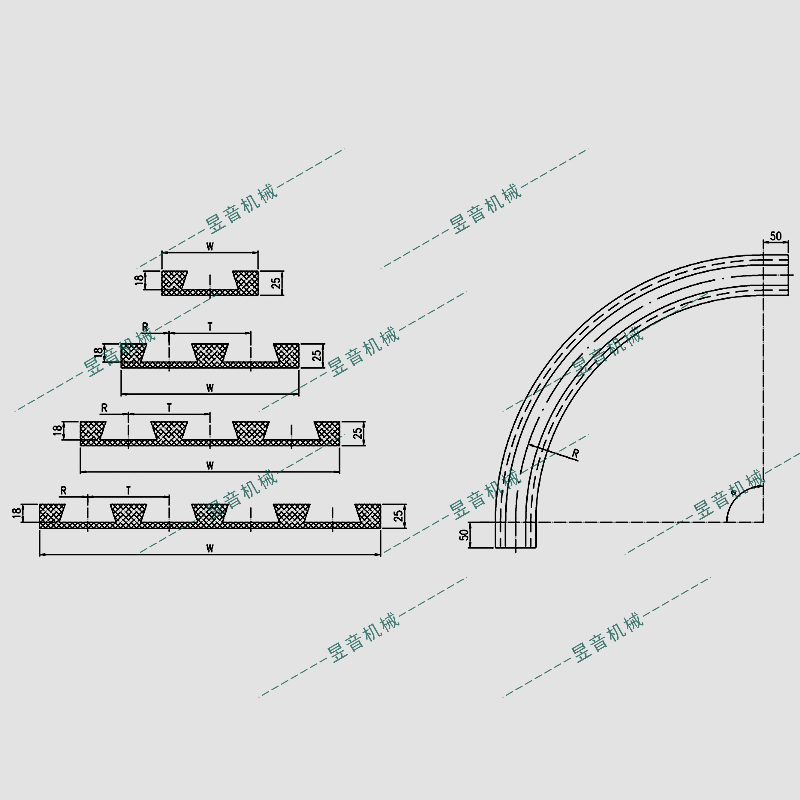 15~90° *節(jié)距:T 兩端出入口直線段各為50mm