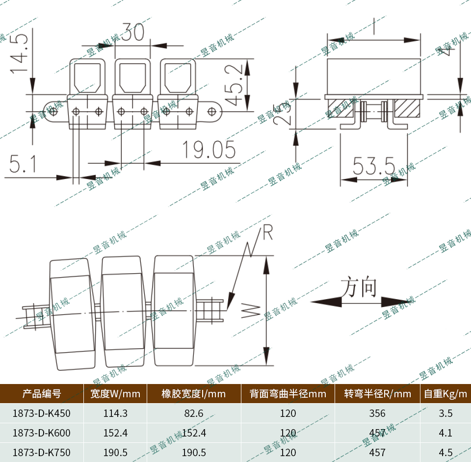 材質(zhì):卡板為POM,夾塊為天然橡膠,底鏈為12A滾子鏈,碳鋼或不銹鋼制造