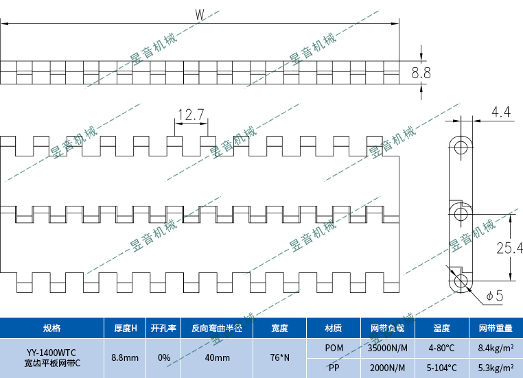 1400WTC 寬齒平板網(wǎng)帶C