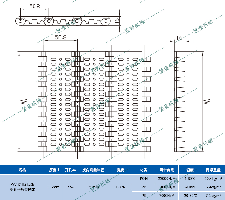 1610AII-KK穿孔平板型網(wǎng)帶(反面兩條筋型)